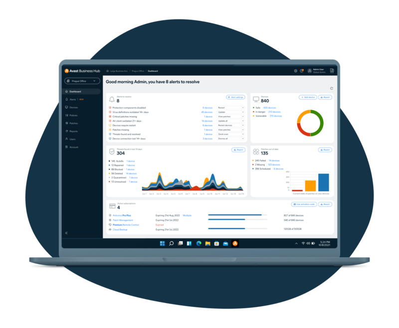 Se internethot dyka upp i realtid och få omfattande rapporter och administrativa funktioner – allt direkt från din webbläsare. Med vår molnbaserade konsol kan du hantera dina Avast Business Security-tjänster och -prenumerationer från en och samma plats online.